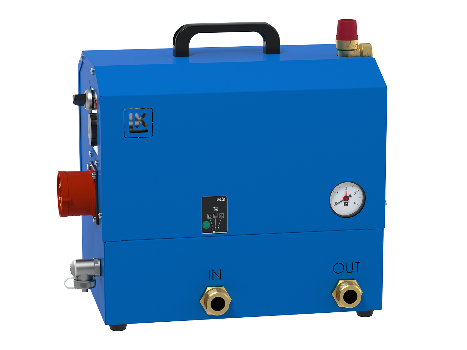 The LK 440 is delivered in a blue cabinet for best protection. A pressure gauge shows the system pressure and any adjustment of the circulation pump speed is easily made on the pump's display. With its compact design, low weight and handle, the LK 440 is easy to transport.